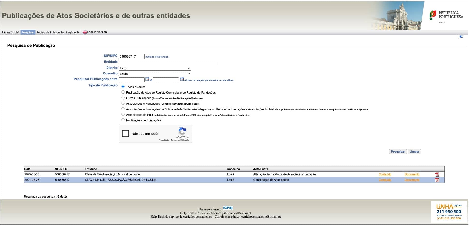 Pesquisar sobre a Clave de Sul na página das Publicações de Atos Societários e de outras entidades (clicar). NIF: 516566717